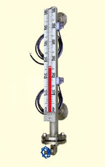 控制型是在翻柱液位計(jì)的基礎(chǔ)上增加了磁控開關(guān),在監(jiān)測液位的同時(shí)磁控開關(guān)信號可用于對液位進(jìn)行控制或報(bào)警;遠(yuǎn)傳型是在翻柱液位計(jì)的基礎(chǔ)上增加了 4~20mA 變送傳感器,在現(xiàn)場監(jiān)測液位的同時(shí)將液位的變化通過變送傳感器、線纜及儀表傳到控制室,實(shí)現(xiàn)遠(yuǎn)程監(jiān)測和控制。
