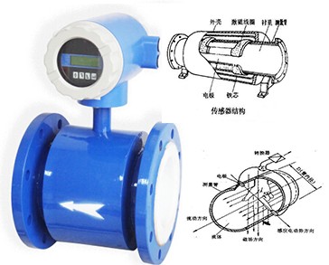 在結(jié)構(gòu)上,電磁流量計由電磁流量傳感器和轉(zhuǎn)換器兩部分組成。傳感器安裝在工業(yè)過程管道上,它的作用是將流進管道內(nèi)的液體體積流量值線性地變換成感生電勢信號,并通過傳輸線將此信號送到轉(zhuǎn)換器。轉(zhuǎn)換器安裝在離傳感器不太遠(yuǎn)的地方,它將傳感器送來的流量信號進行放大,并轉(zhuǎn)換成流量信號成正比的標(biāo)準(zhǔn)電信號輸出,以進行顯示,累積和調(diào)節(jié)控制。