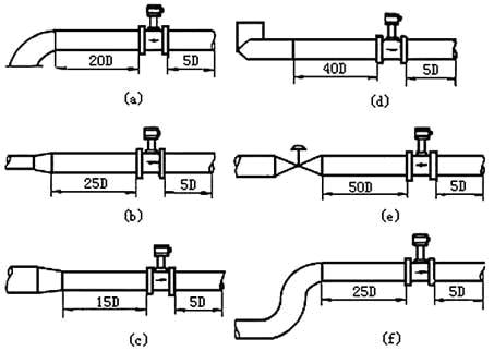 渦街流量計(jì)必須保證上、下游直管段有必要的長(zhǎng)度(見(jiàn)圖5)。