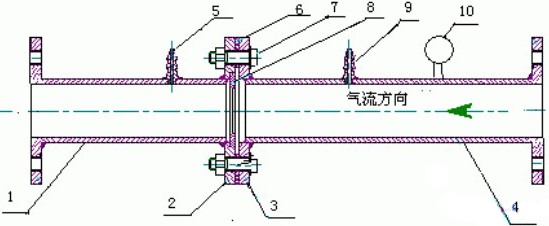 1、 4管路 2、3法蘭盤 5、9壓差計(jì)接頭 6密封圈