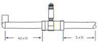 渦輪流量計傳感器應(yīng)安裝在便于維修,管道無振動、無強磁干擾與熱輻射影響的場所。安裝在室外時,應(yīng)有避直射陽光和放雨淋的措施。 (2)安裝要求及注意事項 渦輪流量計水平安裝的傳感器要求管道不應(yīng)有目測可覺察的傾斜(5°以內(nèi))垂直安裝的傳感器管道垂直偏差應(yīng)小于5°,流體方向應(yīng)有下向上。 不能停流的場所,應(yīng)加裝旁通和截止閥。 若流體含有雜質(zhì),則應(yīng)在上游側(cè)裝過濾器;若含有氣體,則應(yīng)在上游側(cè)裝消氣器。過濾器和消氣器的排污口和消氣口要通向安全的場所。 流量調(diào)節(jié)閥應(yīng)裝在傳感器下游,上游的截止閥在測量時應(yīng)全開,且都不得產(chǎn)生振動和外泄。對于可能產(chǎn)生逆向流的流程應(yīng)加止回閥以防流體反向流動。 傳感器應(yīng)與管道同心,密封墊圈不得凸入管路。傳感器不應(yīng)再水平管線的最高點,以免管線內(nèi)聚集的氣體(如停流時混入空氣)停留在傳感器處,不易排出而影響測量。 傳感器前后管道應(yīng)支撐牢靠,不產(chǎn)生振動。對易凝結(jié)流體要對傳感器及其前后管道采取保溫措施。 傳輸電纜常用雙芯或三芯帶屏蔽信號電纜,屏蔽信號電纜最好在顯示儀表(流量積算儀或流量計算控制儀)端接地,傳輸路徑不應(yīng)與動力電源線平行,也不要敷設(shè)在動力電源線集中的區(qū)域。 渦輪流量計安裝直管段要求: