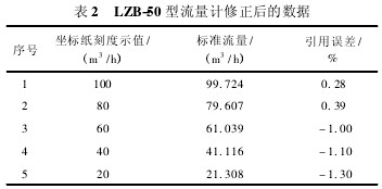 (1)把轉(zhuǎn)子流量計(jì)按玻璃管上的刻度示值做一遍檢定,得到如表1所示數(shù)據(jù),從中可以看出刻度示值為“100”和“80”時的引用誤差非常大,已經(jīng)無法正常使用(JJG257—2007《浮子流量計(jì)檢定規(guī)程》中規(guī)定引用誤差最大為5%)。