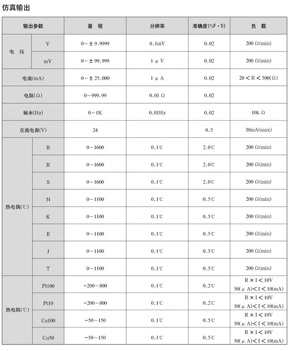 * 直接鍵入熱電偶(熱電阻)℃值,顯示并輸出對應(yīng)的mV(Ω)值,無須再查分度表.