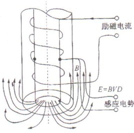 插入式電磁流量計(jì)工作原理圖解 插入式電磁流量計(jì)原理與管道式電磁流量計(jì)一樣也是基于法拉第電磁感應(yīng)定律。當(dāng)導(dǎo)電液體以平均流速V且垂直于磁場(chǎng)強(qiáng)度為B磁力線方向通過距離為L的兩電極時(shí),在電極間就產(chǎn)生相對(duì)的電動(dòng)勢(shì)E,法拉第電磁感應(yīng)定律為: