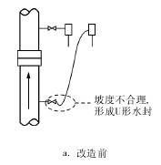 蒸汽是石油化工企業(yè)重要的二次能源,在企業(yè)能源計(jì)量中占有重要地位。從企業(yè)效益出發(fā),要降低生產(chǎn)成本則需降低蒸汽的消耗量,蒸汽計(jì)量由此成為企業(yè)計(jì)量技術(shù)工作的重點(diǎn)之一。儀表都有一定的測量范圍和合適的量程比,可是工藝生產(chǎn)過程往往又有不同負(fù)荷狀態(tài)下的多種運(yùn)行方式,隨之對應(yīng)的蒸汽用量就會出現(xiàn)大流量、正常流量及小流量等不同流速,蒸汽的物理參數(shù)如溫度、壓力及密度等參數(shù)也會在不同負(fù)荷狀態(tài)下發(fā)生相應(yīng)的變化。任何類型測量蒸汽的儀表要滿足不同工況下的準(zhǔn)確測量實(shí)際上很困難。這就要求在測量方法和儀表選型上根據(jù)測量回路的要求充分考慮各種計(jì)量儀表的優(yōu)缺點(diǎn),選擇量程比合適的儀表并采用適當(dāng)?shù)难a(bǔ)償措施,如溫壓補(bǔ)償、蒸汽狀態(tài)及分段線性化補(bǔ)償?shù)。但是隨之而來就會產(chǎn)生安裝位置、直管段及維護(hù)需求等一系列的安裝問題。 為此,圍繞當(dāng)前常用的差壓式和速度式蒸汽流量計(jì)的選型、安裝注意事項(xiàng)以及安裝和運(yùn)行中容易發(fā)生的問題展開討論,重點(diǎn)考慮蒸汽流量儀表選型時(shí)儀表和被測介質(zhì)的特性、生產(chǎn)工藝的變化、儀表的安裝條件及管理維護(hù)等因素的影響。 1 蒸汽流量計(jì)的類型 ①企業(yè)使用蒸汽流量計(jì)一般用于: 計(jì)量蒸汽用量,進(jìn)行內(nèi)部或外部計(jì)費(fèi)結(jié)算; 監(jiān)測能源的使用效率,如根據(jù)熱焓確定添加的蒸汽量; 改進(jìn)工藝過程的控制效果,比如使流量恒定在設(shè)定值或按一定的規(guī)律變化。 用戶應(yīng)根據(jù)自身需要,再結(jié)合流量計(jì)的相關(guān)特性選擇合適的蒸汽流量儀表。目前,測量蒸汽介質(zhì)普遍選用的是差壓流量計(jì)和渦街流量計(jì)配密度補(bǔ)償方式完成計(jì)量。 1.1 差壓式流量計(jì) 差壓式流量計(jì)在穩(wěn)流情況下,管道中流量與壓差的平方根成正比;诹黧w質(zhì)量守恒( 連續(xù)性方程) 和能量守恒( 伯努利方程) 定律,可知基本的流量計(jì)算式為: 式中 C ———流出系數(shù)( 實(shí)際流量/理論流量) ; d ———節(jié)流件孔徑,m; Δp ———節(jié)流件上下游的壓差,Pa; qm———蒸汽質(zhì)量流量,t/h; β ———直徑比,β = 孔板直徑 d /管道直徑D; ε ———可膨脹性系數(shù),蒸汽的 ε 小于 1; ρ ———蒸汽密度,kg /m3。 差壓式流量計(jì)中常用的有孔板流量計(jì)和新型V 錐流量計(jì)兩種型式。 孔板流量計(jì)以簡單結(jié)實(shí)、成本低廉及無需額外標(biāo)定等優(yōu)勢在工業(yè)中獲得廣泛應(yīng)用。但它也有自身的缺點(diǎn): 受限于工作原理,量程比限制在3∶ 1 ~ 5∶ 1; 在水錘作用下,孔板會變形,如果設(shè)計(jì)或安裝不當(dāng)甚至?xí)氯艿? 孔板的直角邊緣在長期運(yùn)行后會磨損,特別是在進(jìn)行蒸汽介質(zhì)測量時(shí)會改變孔板特性,影響測量精度,因此必須對孔板進(jìn)行周期檢查并予以更換; 孔板流量計(jì)一般需要較長的直管段以保證精度,表 1 給出了不同直徑比 β 和不同上游擾流布置情況下所建議的直管段長度。 V錐流量計(jì)具有壓損小、量程比寬、直管段短及測量精度高等優(yōu)點(diǎn),這些特點(diǎn)來源于特殊的設(shè)計(jì)結(jié)構(gòu)———錐體位于管道中心處。在計(jì)算工況下的實(shí)際流量時(shí),應(yīng)先計(jì)算出流體流過V形錐的有效面積S和等效直徑比β,再代入式(1)計(jì)算得到。 雖然V錐流量計(jì)可以在直管段不夠長的情況下較其他節(jié)流裝置有較高的測量精度,但所需的前后直管段仍要視具體情況而定。有數(shù)據(jù)顯示,前置閘閥開度大于25%時(shí),各種開度下當(dāng)要求較高測量準(zhǔn)確時(shí),流量計(jì)前直管段長度L=10D尚嫌不足,而不是各種情況下均為前0~3D、后0~1D的直管段,這個(gè)特點(diǎn)需要相關(guān)技術(shù)人員的高度重視。 當(dāng)測量蒸汽介質(zhì)的管道停汽檢修時(shí),管道底部會存有積水。恢復(fù)通汽后,在壓力推動下,水的波動很容易引起管道振動,流量較大時(shí)管道振動劇烈甚至?xí)䲟p壞節(jié)流件造成生產(chǎn)事故。 1.2渦街流量計(jì) 流體流經(jīng)設(shè)置在管道內(nèi)的漩渦發(fā)生體時(shí)會產(chǎn)生流動振蕩,在發(fā)生體的兩側(cè)交替產(chǎn)生規(guī)則漩渦,測定其振蕩頻率可以反應(yīng)流量的大小。當(dāng)工況條件合適時(shí),漩渦頻率f和流體速度v成線性關(guān)系,且與密度無關(guān),可表示為: 對于給定的流量計(jì),其質(zhì)量流量 qm為: 式中 A ———流量計(jì)的截面積,m2 式中 A ———流量計(jì)的截面積,m2 d ———漩渦發(fā)生體迎流面的最大寬度,m; f ———漩渦的釋放頻率,Hz; k ———對于給定的流量計(jì)為常數(shù); St———斯特羅哈爾數(shù),無量綱,當(dāng)雷諾數(shù) Re在 102~ 105時(shí)其值約為 0. 2; v ———發(fā)生體兩側(cè)的平均流速,m / s; ρ ———蒸汽密度,kg /m3。 與孔板流量計(jì)相比,渦街流量計(jì)有較好的量程比( 一般為 30∶ 1) 、無可動部件及流阻低等優(yōu)點(diǎn),但在抗振、脈動流及抗干擾等方面也有明顯的局限性。為此,在安裝渦街流量傳感器時(shí)應(yīng)注意: a.